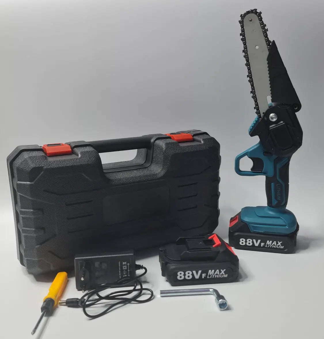 AKU lančana testera 88V Max sa 2 LI-ION baterije + punjač + kofer + lanac + LED svetlo