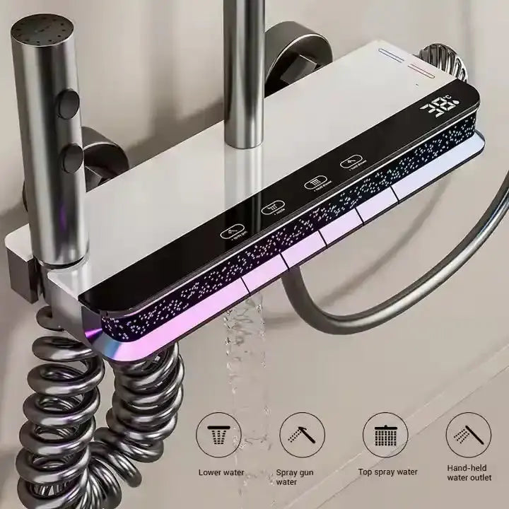 Pametni tuš sa dodacima kombinuje naprednu tehnologiju, moderan dizajn i funkcionalnost, donoseći luksuzno iskustvo direktno u vaše kupatilo. Uz digitalni displej, više režima mlaza i kvalitetne materijale, svaki trenutak pod tušem postaje pravo uživanje.